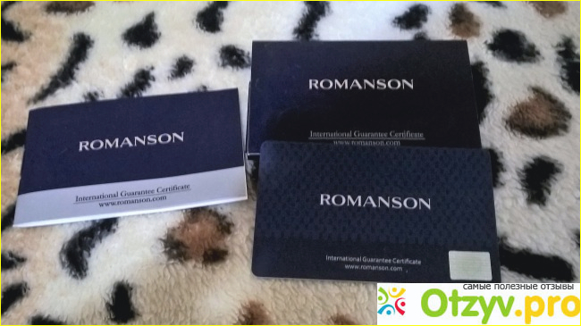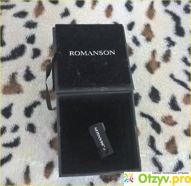Часы Romanson поставляются в черном картонном футляре, с названием часов на откидной крышке. Внутри футляр оббит черным бархатом, сами часы покоятся на черной бархатной подушке.