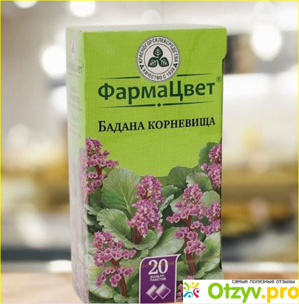 Наиболее удобным на мой взгляд для заваривания чая из бадана является средство, которое можно часто встретить в аптеках. Оно так и называется «Бадана корневище». Внутри находятся 20 фильтр-пакетиков для заваривания чая из этого растения. Производится оно у нас в России предприятием АО "Красногорсклексредства".