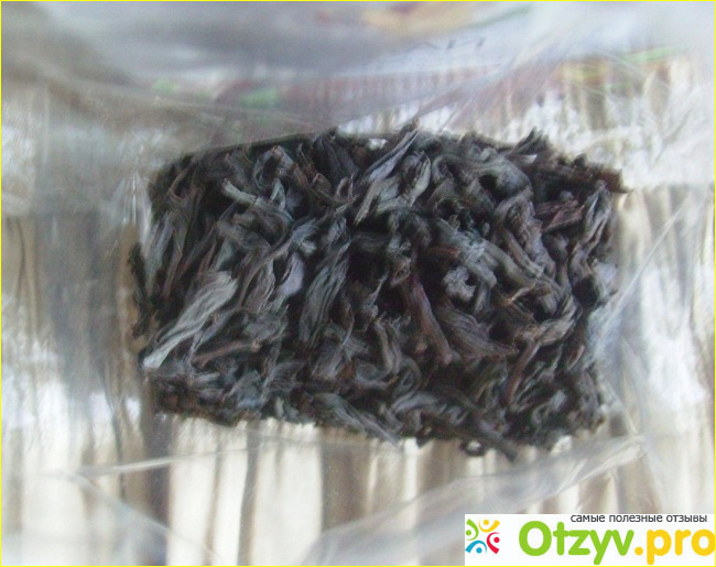 Крупный лист, который разворачивается при заваривании. Постепенно дает темный насыщенный цвет. Неприятных оттенков вкуса не нахожу, в меру крепкий. В то же время и ничего особенного во вкусе нет: пресноватый и не ароматный.