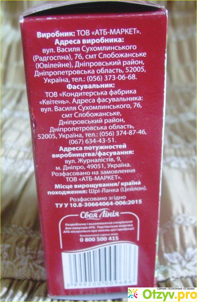 Если посмотреть на характеристики чая марки Своя линия - всё на хорошем уровне. Байховый, крупнолистовой, высший сорт, выращен на Цейлоне. На самом деле чай не плохой.
