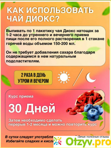 Как только я получила diox чай для похудения — в тот же день начала его прием. К ому времени я начиталась о нем так ного информации, что знала все подробности его приготовления и применения.