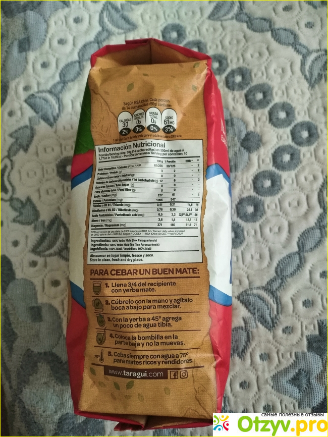 Качество продукта. Пыли не много, в основном преобладает количество молотых листочков и палочек. Вкус хороший с выраженным горьковатым послевкусием, подойдёт опытным любителям йербы. Для того чтоб вкус раскрылся лучше, следуйте инструкции по завариванию мате (Она есть на упаковке). Новичкам я бы порекомендовал сорта по легче, где горечь не так выражена.