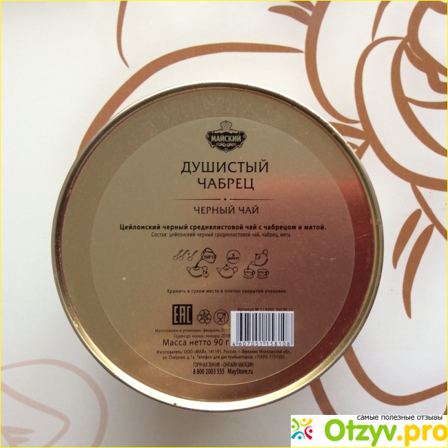 На упаковке производитель оставил необходимую информацию, которая так или иначе может пригодиться потребителю. В эту информацию входит состав, который на мой взгляд является идеальным. Он состоит только из чёрного чая и добавки в виде душистого чабреца. Также можно ознакомиться с правилами заваривания, которые игнорировать не стоит, ведь благодаря им можно получить действительно вкусный и ароматный напиток. И, конечно, не стоит оставлять без внимания информацию о самом производителе, если это кому-то будет важно и интересно.
