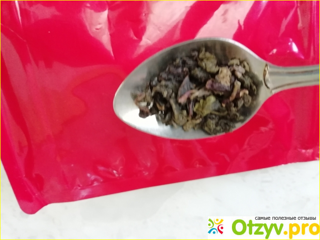 Сами чаинки вида неровного, чуть скрученного шарика темно-зеленного цвета. Даже не заваренный чай восхищает своим ароматом.