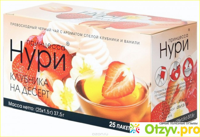 В упаковке 25 пакетиков чая, каждый помещен в индивидуальный пакетик с изображением этой самой принцессы Нури.