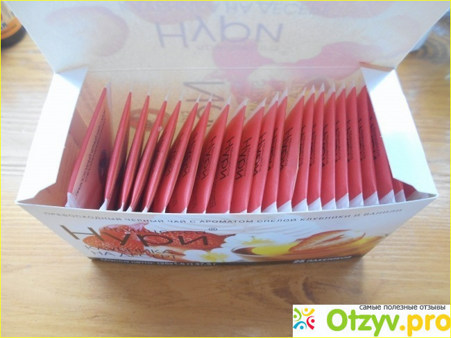 Сам чай черный байховый, производитель называет его превосходный с ароматом спелой клубники и ванили.