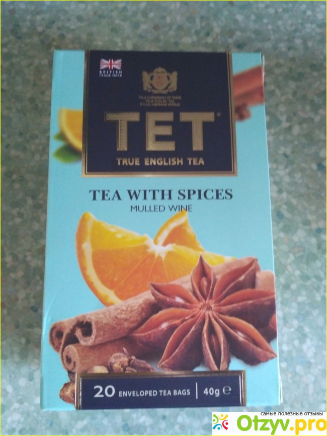 Увидела в "придворном" магазине интересную новую упаковку чая ТЕТ Mulled Wine. В составе заявлена смесь цейлонского, индийского и кенийского черных чаев со специями (лимонная и апельсиновая цедра, кардамон, имбирь, гвоздика и корица).
