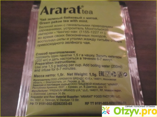 Информация о производителе на русском и армянском. Сделано в Ереване