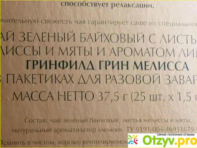 Состав у чая натуральный, радует что на самом деле есть листья мяты и мелиссы, правда ещё и ароматизатор лимона, но он большой роли во вкусе не играет.