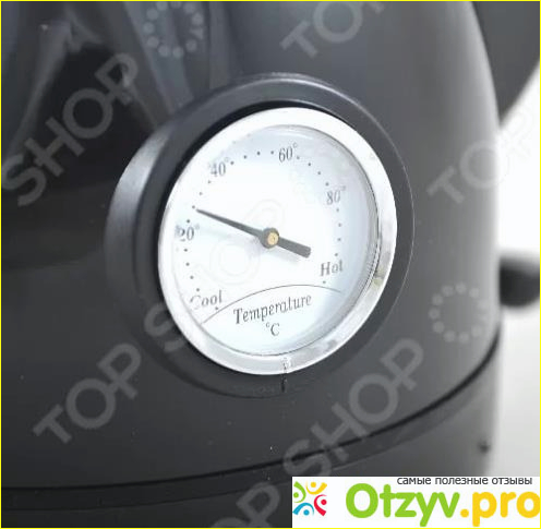 Мне очень нравится внешний вид чайника. Он стильного черного цвета, а внизу у него имеется циферблат, который показывает температуру воды. Вот за эту функцию я его просто обожаю, это мой первый чайник, который показывает температуру воды!