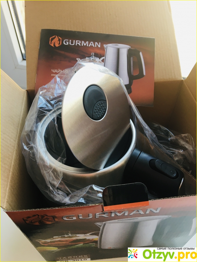 Но сегодня пришлось его выкинуть и купить новый. Хотя с покупкой возник вопрос, так как магазины бытовой техники, в связи с карантином закрыты. Но выручила онлайн покупка. Выбор наш пал на электрический чайник GURMAN GR3010. Доставили нам его через час после оплаты. Он был хорошо упакован. Мы его вскрыли, проверили, все ли в наличии. Нам дали гарантийный талон. При первом кипячении присутствовал небольшой запах. Первую воду мы вылили. При повторном кипячении все оказалось в порядке. Запах улетучился. В эксплуатации чайник оказался удобным. Есть индикатор воды. Крышка открывается сверху одним легким нажатием. В общем мы пока не пожалели, что купили именно эту модель.
