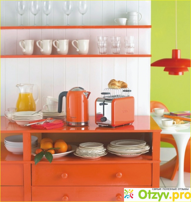 Купил этот чайник вместо сгоревшей Тефали. Выбор пал на него потому, что очень гармонично вписывается в интерьер моей кухни – обои оранжевые, табуретки у стола тоже оранжевые, как-то получается все в тон. Да и выглядит весьма оригинально, на фоне других моделей.