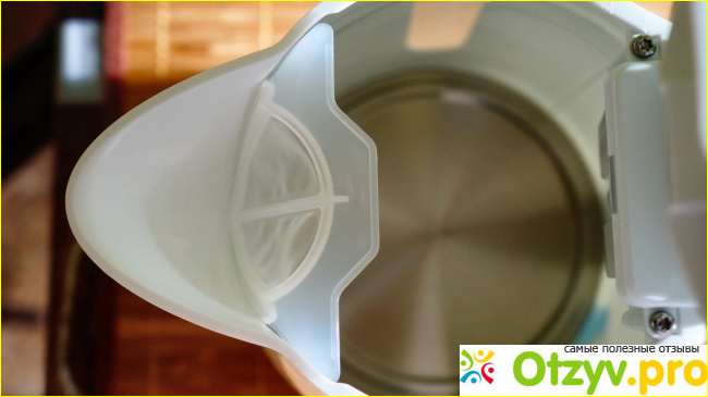 Кнопочка на крышке не нагревается, это сделано для дополнительной защиты от ожогов. Микрофильтр обеспечит вам чистую без примесей воду, он способен удерживать мелкие частицы размером в 200 микрон, поэтому также предотвратит чайник от накипи и извести.