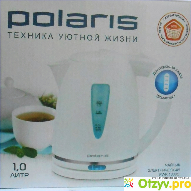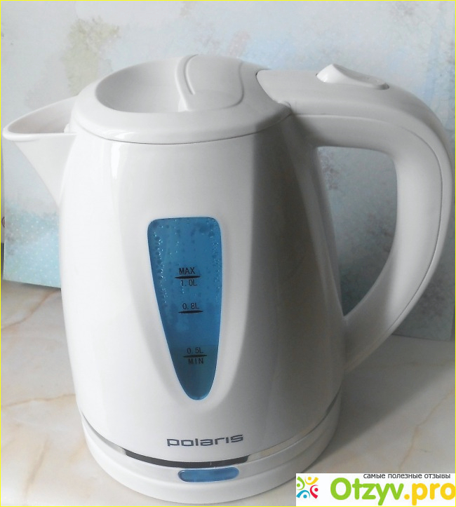 к. в чайниках, у которых металлический корпус, я разочаровалась. Цена, конечно, тоже была важна, потому что маленький прибор по определению не должен стоить очень дорого. Я просмотрела каталоги многих интернет-магазинов, объездила практически все магазины в своем городе, торгующие бытовой техникой, но нигде не было чайника, подходящего мне по всем параметрам. Потом в гипермаркете Метро я заглянула в соответствующий отдел и увидела симпатичный чайник Polaris белого цвета емкостью 1 литр. С замиранием сердца я пригляделась к техническим характеристикам, написанным на коробке, и поняла -- это именно то, что я ищу. Мощность данной модели электрочайника, а именно Polaris 1038C, составляет 1000-1200 Вт. Так что его смело можно включать одновременно с другими электроприборами и не переживать, что вылетят пробки. Небольшой объем чайника меня вполне устраивает, для семьи из 3-х человек этого вполне достаточно. Да, возможно, вода вскипает не так быстро, как в чайниках, мощность которых зашкаливает за 2200 Вт, но разница составляет всего 1-2 минуты, которые особой роли не играют.