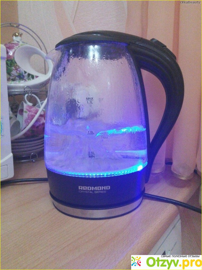 Смотрела в интернете какой чайник лучше купить и увидела что есть прозрачные, да еще и с подсветкой. Очень красиво, для стильной кухни - самое оно. У нас еще и кухня в синих тонах, а тут подсветка синяя - я просто в него влюбилась. Муж как-то скептически к нему был настроен, думал, что материал не прочный, так как он не внушал доверия на первый взгляд.