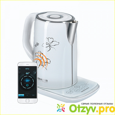 И в работе хорош, и как украшение кухни красив) На корпусе элегантный рисунок, который визуально выделяет его от стандартных скучный чайников. Я люблю красоту. Что еще ново было для меня, так это дистанционное управление через приложение от производителя Редмонд.