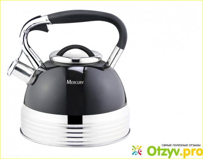 Mercury MC-6580 выполнен из высококачественной нержавеющей стали, свисток с курковым механизмом для открывания, ручка эргономичная с покрытием Soft Touch, крышка изготовлена из нержавеющей стали плюс бакелит, подходит для всех типов плит, в том числе индукционных.