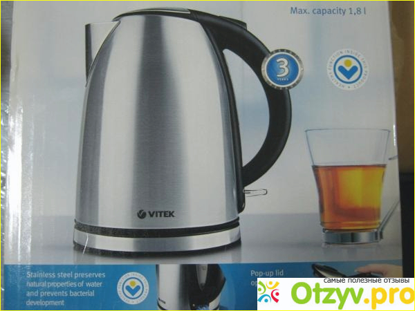 Итак его основная характеристика. Чайник моделью Vitek VT-1169 производится в Китае о чем раньше я знала, так как сам по себе бренд Vitek считается скромным по качеству и его приобретают в случияхэкономии семейного бюджета, но все же он из за свой ценовой категории стоит в каждом магазине техники и электроники. Итак объем данного чайника составляет 1,8 литров, что позволяет ему вполне нормально напоить вкусным чаем пример 5 человек и гостей, все конечно будет еще и зависеть от размера кружек, в который будет разливаться чай, кофе, какао и прочие горячие напитки.