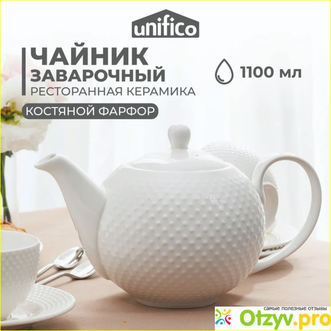 У меня муж любит пить чай в огромных количествах, но обязательно из заварочного чайника, пакетиков в нашем доме не существует! Обычно он заваривает под прессом, но тут ему подарили друзья на новый год шикарный чайник Unifico Alessandra. Скажу сразу, старый пресс тут же ушел в утиль, а новый теперь гордо украшает наш стол. Он белый, с рельефной поверхностью, изготовлен из костяного фарфора, то есть не должен царапаться и скалываться.