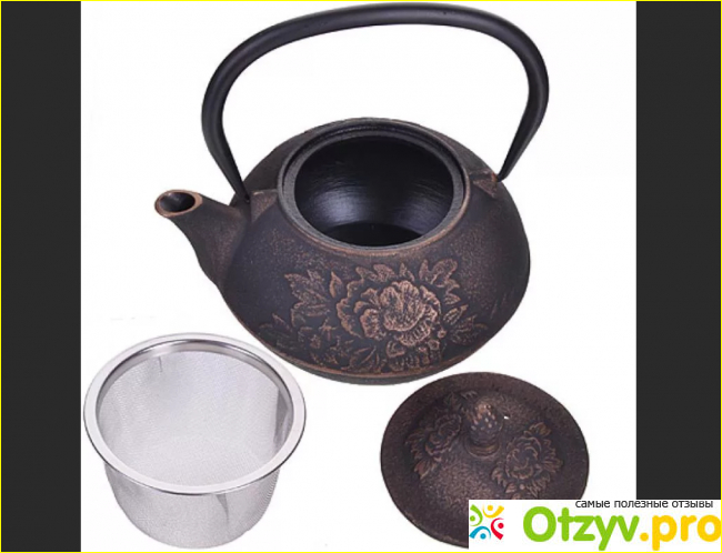Чайник заварочныйMayer&Boch MB-28350 сделан из чугуна высокого качества. Те, кто в детстве жил в деревне у бабушки, наверняка помнят, что из себя представляет чугун и какой он тяжелый! Главное его преимущество состоит в долговременном удержании тепла. Поэтому ваша заварка не остынет на протяжении длительного времени. Сверху данный материал покрыт специальным термостойким лаком, который не позволяет чугуну ржаветь, а также позволяет избежать металлического привкуса чая. Производитель молодец, что позаботился об этом.