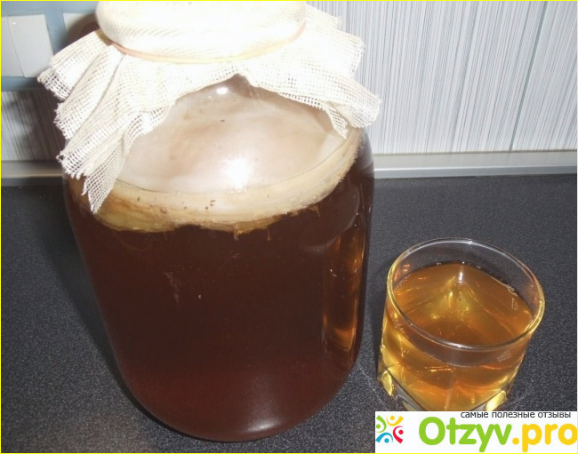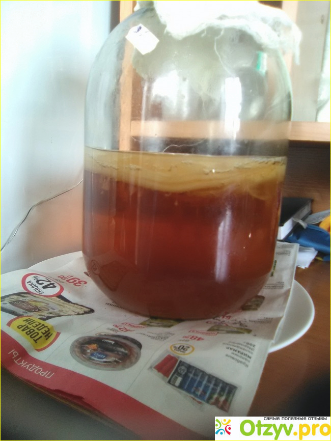 Прошло с той поры уже не мало лет, и как-то я увидела у своей тёти, точно такой же гриб, и такая ностальгия нашла за теми временами детства. Я решила попросить тётю поделится со мной этим чудо-грибом, так как уже знаю насколько он имеет полезных качеств. Внешне он конечно выглядит не особо красиво, сверху гладенький, а с низу свисают его части в виде нитей, которые и являются его ростовой частью. А делаю я такой напиток так: беру обычный чёрный чай, который мне нравится, настаиваю в заварнике и сливаю в посудину, чтобы он был уже процеженным, добавляю к нему сахар по вкусу, размешиваю, и в охлаждённом виде заливаю им гриб в банке, оно настаивается и стаёт вкусным, а самое главное полезным. Употреблять его нужно тогда, когда он будет напоминать газированый напиток, немного шипеть. Посуду, в которой находится гриб, нельзя закрывать полностью, так, как ему нужен кислород, поэтому его нужно накрывать например марлей, сложенной в несколько слоев, так я накрываю банку сверху. Ставлю банку так, чтобы на него не попадали прямые солнечные лучи, они являются для него вредными.