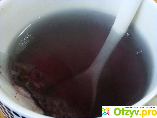 Вкус слегка кислый, также с сильным яблочным, немного гранатовым вкусом и фоном клюква. Послевкусие кисленькое. Кружка не пачкается. Интересен сам процесс заварки. Вначале, стоит залить пакетик кипятком, вода становится тёмно-голубой, почти синеет.