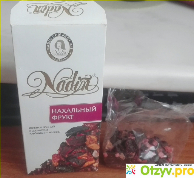 Года два назад обнаружила подобный напиток у знакомой торговой марки Nadin, чаи которой у меня дома не переводятся. Маркетологи постарались и придумали для него очень яркое и запоминающееся название – "Нахальный фрукт", правда, я не вижу в нем ничего агрессивного :). Упакован "фрукт" в стандартный для Nadin картонный пакет.