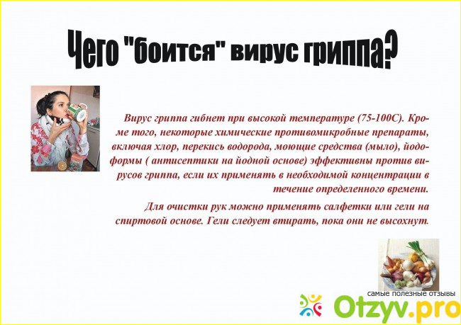Еще совет совершенно всем известно, что все вирусы к нам попадают через дыхательные пути, и конечно наиболее часто попадают через нос. И поэтому если вы чувствуете, что начинаете заболевать или появляются симптомы гриппа такие как: чиханье, раздражение в области носа, то лучше всего нос промыть! Промывают следующим образом: подсоленной водой в такой пропорции берем 1 чайную ложку соли на стакан воды. Растворяем и промываем! А сейчас появились в продаже препараты, спреи, созданные на основе морской воды, для орошения носа. Такие спреи намного лучше обычных капель. Если вечером выполнять эту процедуру, то такое несложное действие защищает нас от проникновения вирусов в организм.