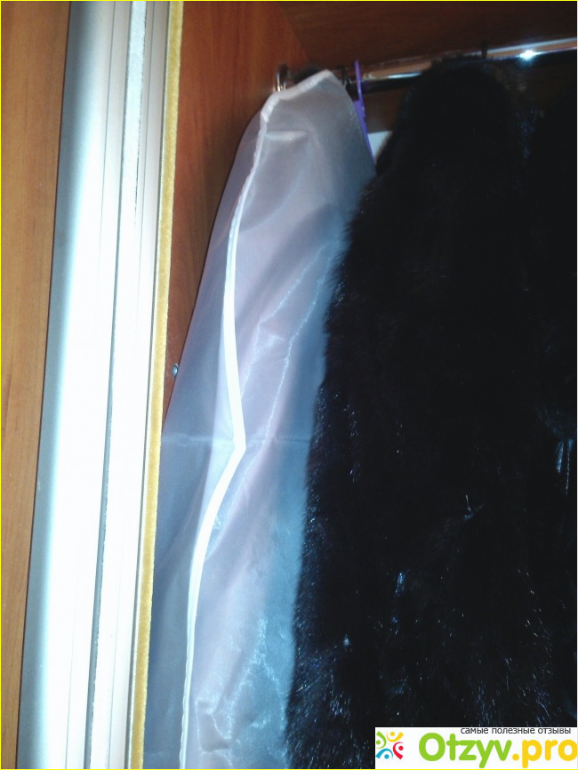 Вот так шубка, одетая в чехол, выглядит в моём шкафу. Так намного удобнее - шубка стала реально занимать на треть меньше места. Заказала себе ещё два чехла, но уже разноцветных. Постепенно планирую для каждой зимней громоздкой вещи прикупить такой вот чехольчик, думаю, удастся таким образом значительно расширить место в шкафу для новых покупок.