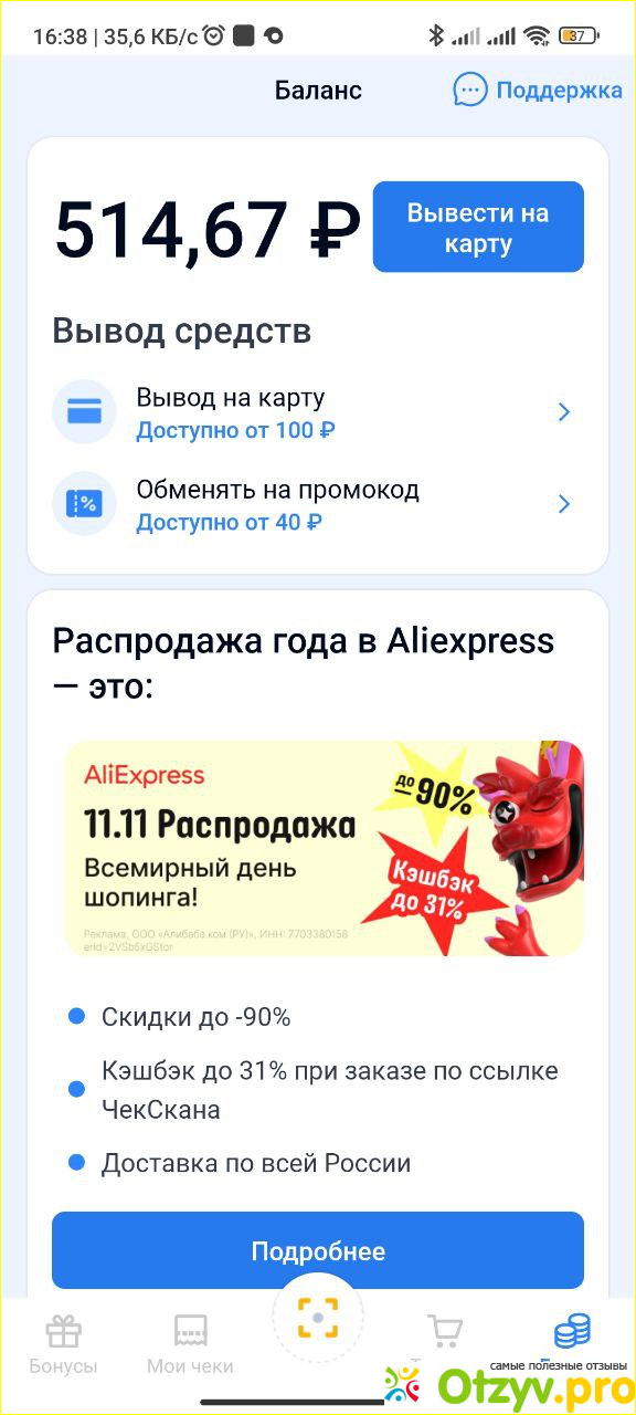 Если магазин входит в программу, то за это капнет 1 рубль. Сперва я сомневалась, стоит ли вообще овчинка выделки, как говорится. Потому что с чека рубль всего… Но на деле постепенно пока сканишь то один, то второй чек, так потихоньку сумма и набежит. Главное не забывать. Мне пока нравится приложение, думаю дальше буду пользоваться.