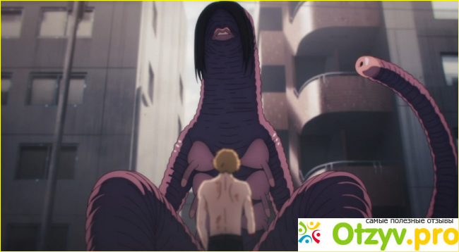 Когда дело доходит до юмора сериала, то здесь он по-японски своеобразный. Я имею в виду, что в сериале, главный герой иногда спасает положение только потому, что хочет потрогать грудь. Так что шутки о сиськах вас будут преследовать здесь нередко. Определенную публику это может шокировать, но с этим необходимо смириться. У японцев легко уживаются вместе расчлененные тела и сексуальные шутки, либо грубый намек на них. Денджи является персонажем, у которого не просто была тяжелая жизнь, но и его тело было разорвано на части с того момента, как он был обременен долгами своего отца. И тут мы плавно переходим к содержание этого сериала.
