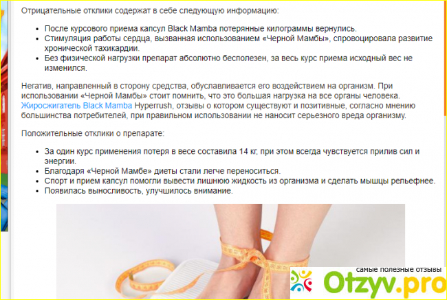 Черная мамба это очень эффективный препарат для тех, кто хочет похудеть. Средство стимулирует нервную систему и блокирует адренорецепторы, а так же выводит лишнюю жидкость из организма.