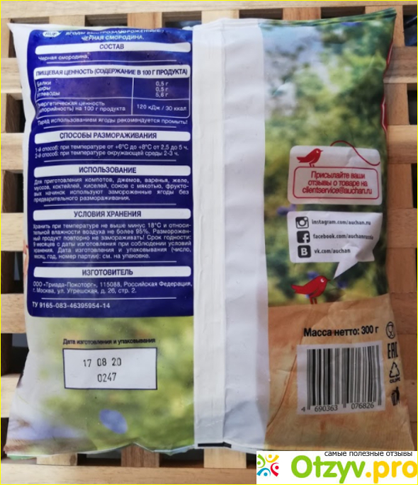 Вот зарекалась я ничего не покупать ашановского производства, но на днях не удержалась - очень захотелось перетертой с сахаром черной смородины, но ягод от других производителей в отделе замороженной продукции не было. Купила, как говорится, то что было, о чем очень жалею.