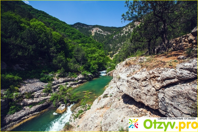 Продвигаясь далее по каньону время как будто останавливается и ты забываешь о том, где находишься. Окрестные красоты напоминает уже не Крым: в глубине это самые настоящие амазонские джунгли, а дальше кавказские горные ущелья, а ещё дальше дикие таежные леса.