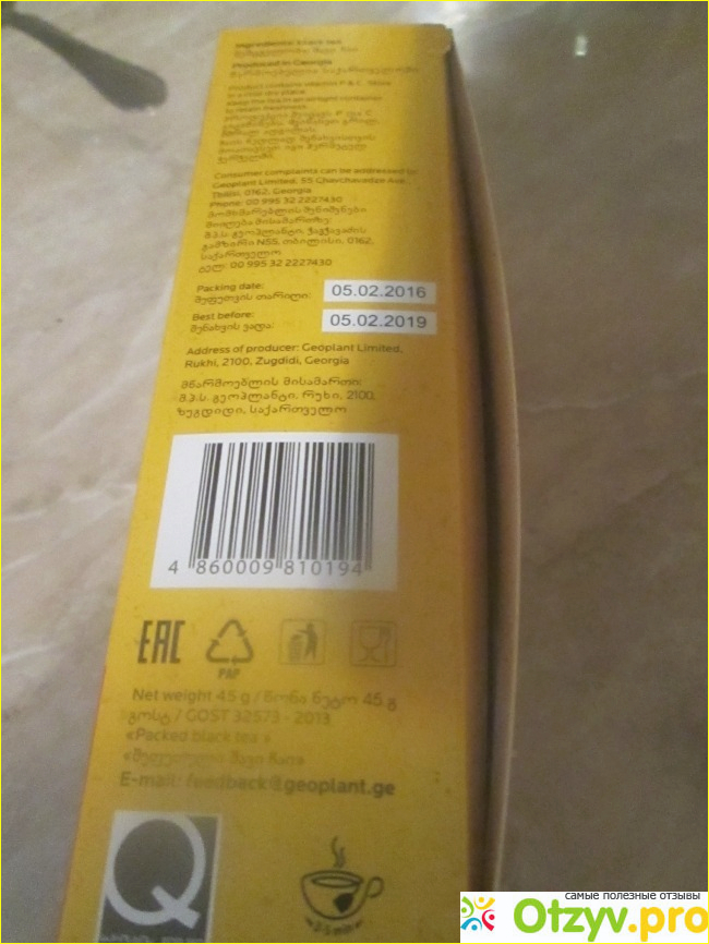 Пачка стоит 2,5 лари, то есть на лето 2016 - 70 рублей, из-за девальвации рубля он подорожал, у нас пакетированный чай можно купить цене от 20 до 100 рублей, в среднем столько же