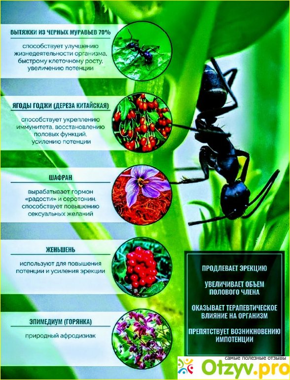 Прежде всего необходимо отметить, что каждый организм индивидуален и может реагировать по-разному на различные стимулирующие средства. В то же время, не все регулирующие организм продукты и препараты обладают гарантированной эффективностью. Согласно многочисленным отзывам, "Черный муравей" может действительно помочь улучшить эрекцию. В основном он основан на растительных экстрактах и ингредиентах, традиционно используемых в традиционной китайской медицине. Он утверждает, что способен стимулировать кровообращение и повысить сексуальное влечение.