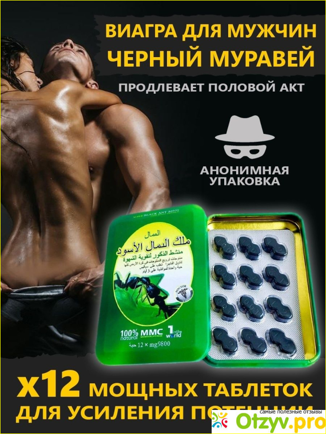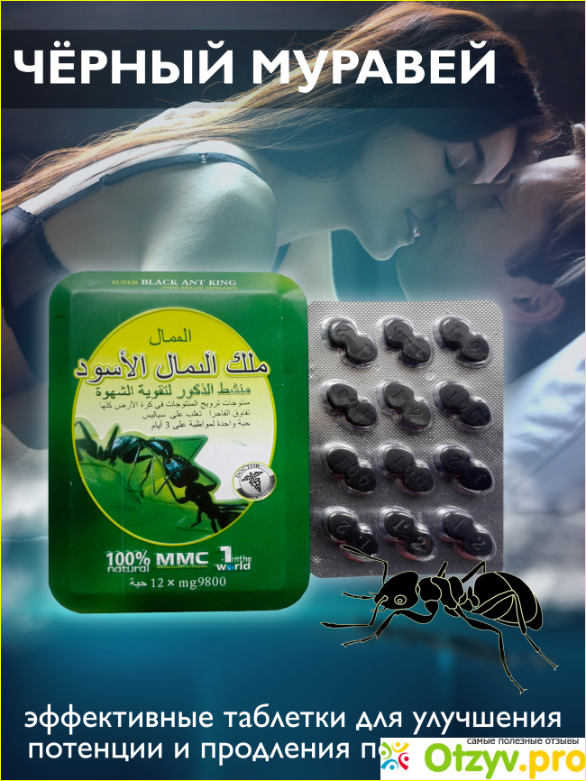 Черный муравей — таблетки для повышения потенции "Черный муравей" — это таблетки, специально созданные для того, чтобы помочь мужчинам повысить свою потенцию и достичь новых вершин сексуальных удовольствий. Эти натуральные таблетки станут надежным спутником в мире интимных отношений.