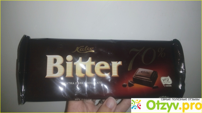 Я больше люблю молочный шоколад, чем черный, но иногда хочется именно черного, чтобы был с горчинкой и с насыщенным вкусом. Мне очень нравится черный шоколад от торговой марки Kalev Bitter. Этот шоколад по настоящему черный, процент содержания какао в нем целых 70%.