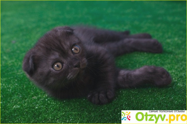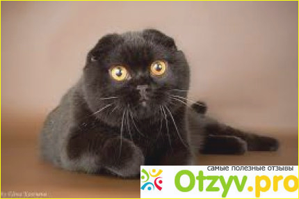 Черный вислоухий кот или «черный шотландец» вызывает немало умиления. Помимо темной окраски короткой гладенькой шерстки такую породу отличают свернутые ушки (признак проявляется после первого месяца рождения).