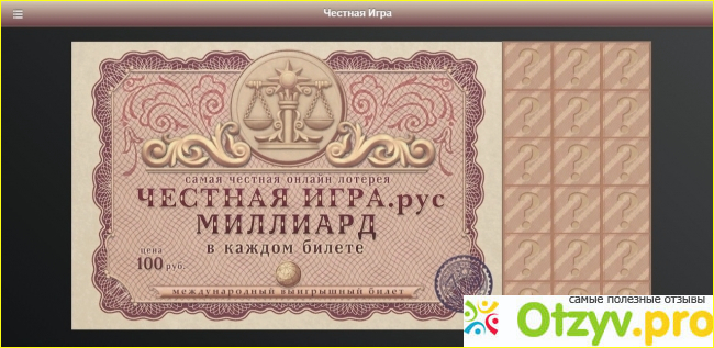 Платный билет очень дешёвый - всего 100 рублей. Решила попробовать. Выигрыш был не очень большим - 150 рублей, но всё же - это выигрыш, значит сайту стоит доверять, подумала я. После этого купила ещё один, выигрыш был больше предыдущего - 300 рублей. Я достаточно подзаработала на данном сайте и хочу порекомендовать его остальным. Самое забавное, что название сайта говорит само за себя - Честнаяигра. рус.