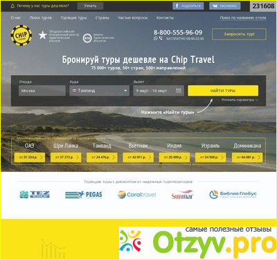 Добрый день, уважаемый посетитель моего отзыва. Сегодня я хочу похвалить очень полезный ресурс для подбора туров Чип Травел, познакомился я с ним в этом году, когда мы с супругой искали подходящий отдых и для себя мы нашли отель в Бельдиби, Турция на данном сайте. Для этого не надо регистрироваться, достаточно сразу же на главной странице указать период вашего отдыха в днях и подобрать лучший для вас тур, можно сразу сократить поиск, выбрав нужную вам страну.