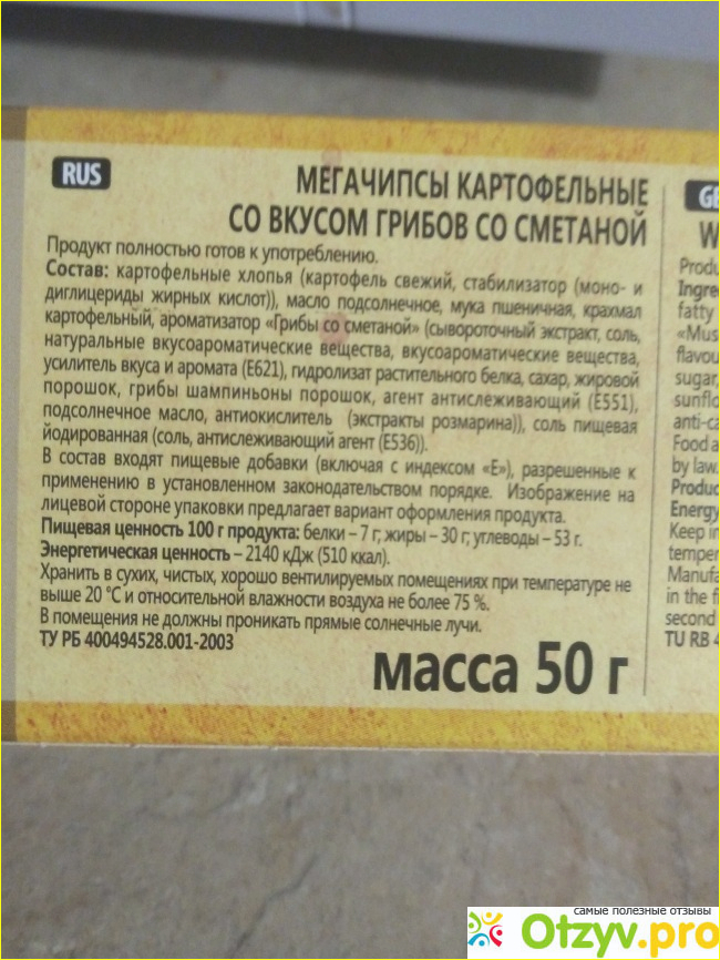 Общая оценка 4, большой минус за состав, который как и у большинства чипсов далеко не идеальный.