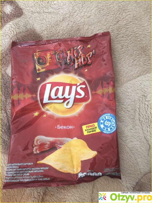 Чипсы Lays "Бекон" продаются в стандартной для этой торговой марки упаковке.