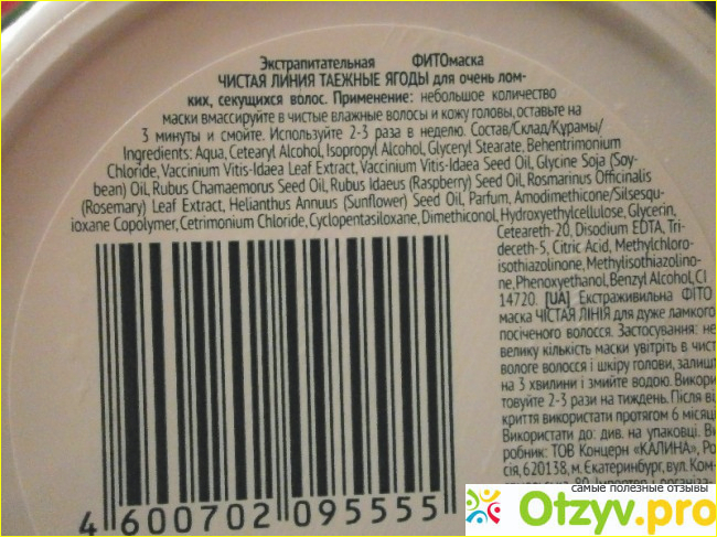 Всем доброго времени суток! хотела бы поделиться впечатлениями от приобретения этого бальзама, он находиться в круглой баночке с рисунком таёжных ягод. Первое , что привлекает это его не высокая цена, пахнет просто замечательно запах не резкий, не специфический! Пользовалась я такой баночкой этого средства примерно околотмесяца, результат положительный : мои волосы прекратили обламываться , стали выглядеть гуще и перестали сечься, так же хочу отметить что они стали мягкими , приобрели красивый отлив на Светка, а на корнях они стали более упругими, до этого я ещё не встречала продукта качественнее этого , он просто прекрасен, это замечательный продук не вызывает раздражения на коже головы, хотелось бы отметить, что привлекает и яркий вид упаковки, консистенция "густая сметана "позволяет без про-блем нанести средство для ухода за волосами на волосы !!!!. я поставлю этому бальзаму чистая линия" таёжные ягоды" для ломких, секущихся волос оценку 9/10.