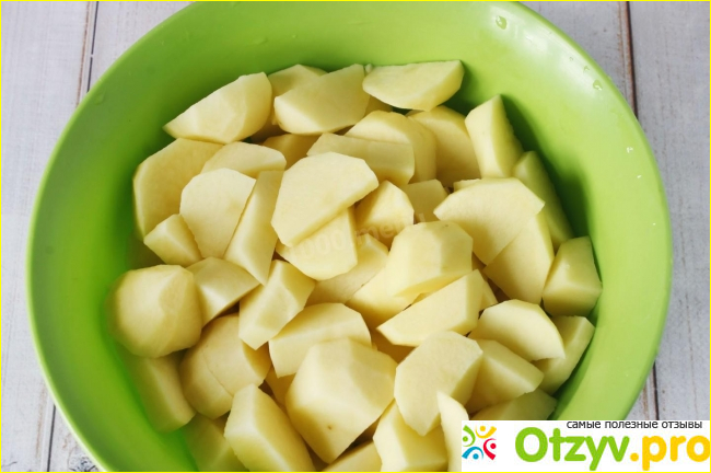 Накладываем закуску в глубокую миску. В такой миске картофель остывает не так быстро.