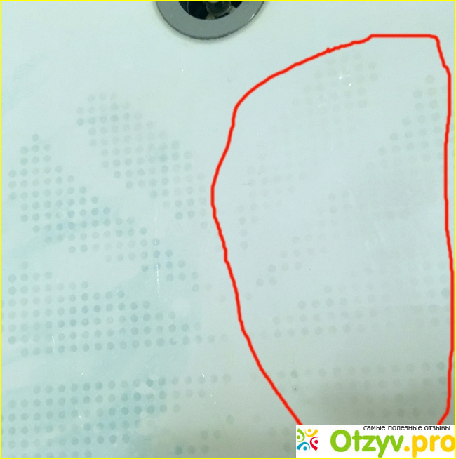 Исходную синеву ванной я сфотографировать не смог – не до того было. Всё усердно оттиралось чистящим кремом Cif. И хоть на флаконе написано, что Cif удаляет 100% грязи, краску он, очевидно, грязью, в полной мере, не посчитал. Нет, отмыл он хорошо. Но больше того, что на фото сделать уже не смог.