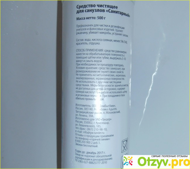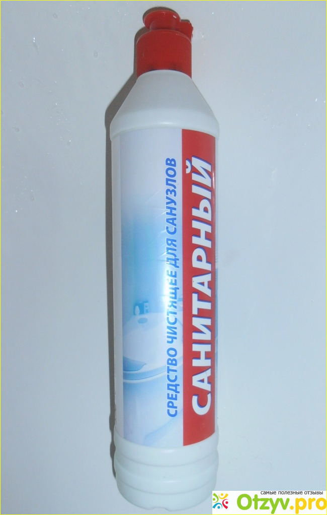 Как то приелся мне мой чистящий гель для санузлов и решила попробовать что то новенькое. В магазине сети "Магнит" купила чистящее средство для санузлов "Санитарный" за 39 рублей. Хотя и мое средство обычно обходится мне в 40 рублей, я не заметила что у санитарного объем гораздо меньше.