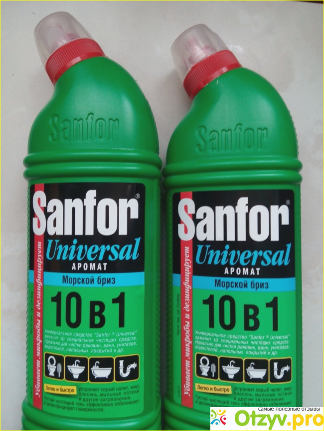 Чистящее средство Sanfor Universal использую уже давно для уборки унитаза, но оно предназначено для любого использования - ванны, туалета, плитки. Когда бывает акция, то приобретаю всегда сразу пару штук. Это средство хорошо очищает от известкового налёта, дезинфицирует, поэтому использую только для унитаза.