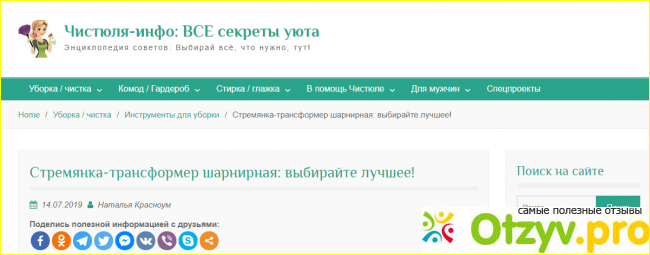 Сайт "Чистюля-Инфо" посвящен хозяйственным, заботам: как полегче убрать, как дочиста отчистить,