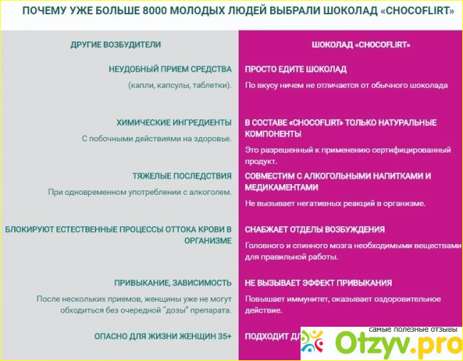 Шокофлирт – препарат имеет полностью натуральный состав, не вызывающий привыкания, расслабляющий, усиливающий чувственную организацию у дам.